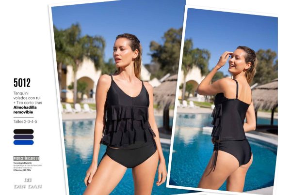 Malla Tankini Con Volados De Tul Y Tiro Corto Din Dan 5012