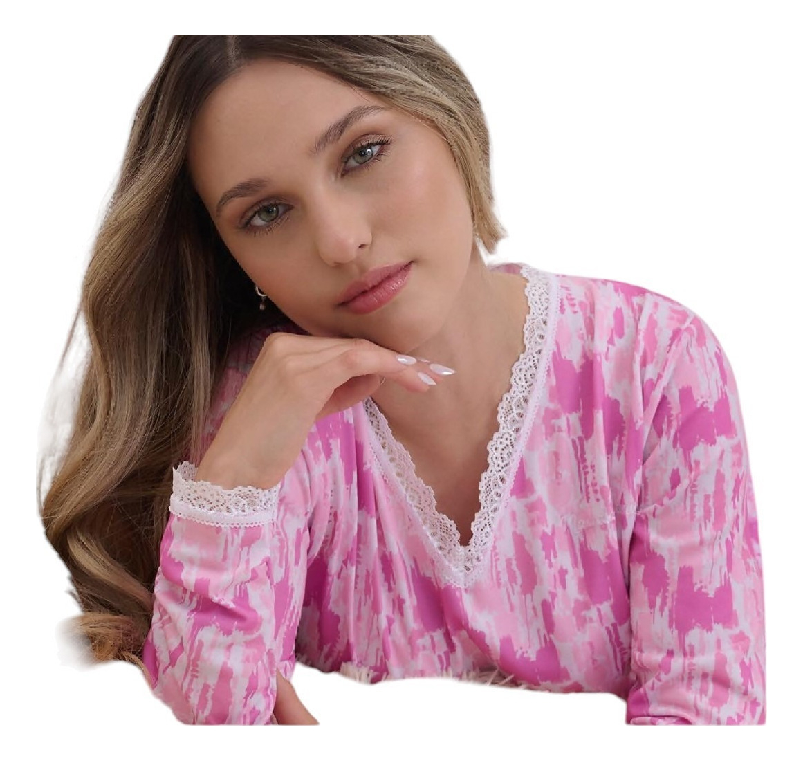 Conjunto manga larga de casaca estampada con puntilla y bordado combinado con pantalon de algodòn