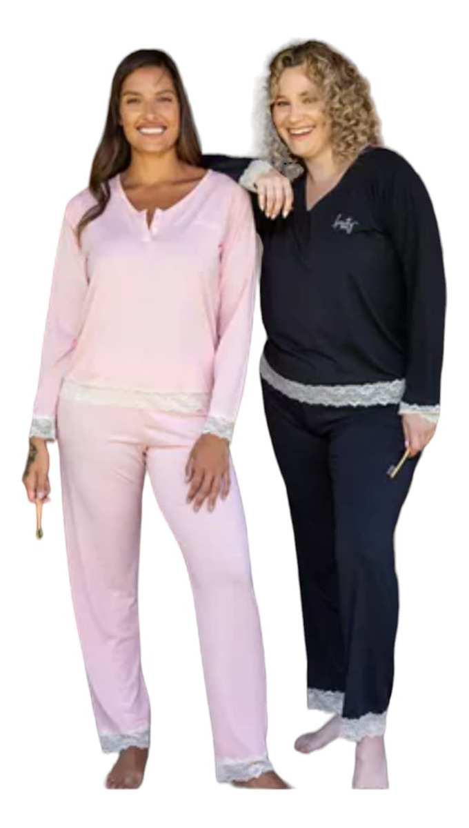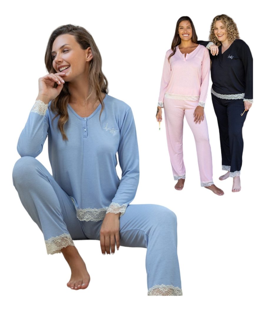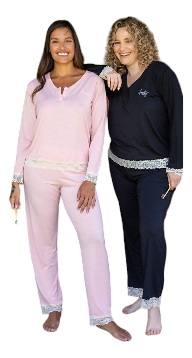 Pijama en modal liso con puntilla y cartera